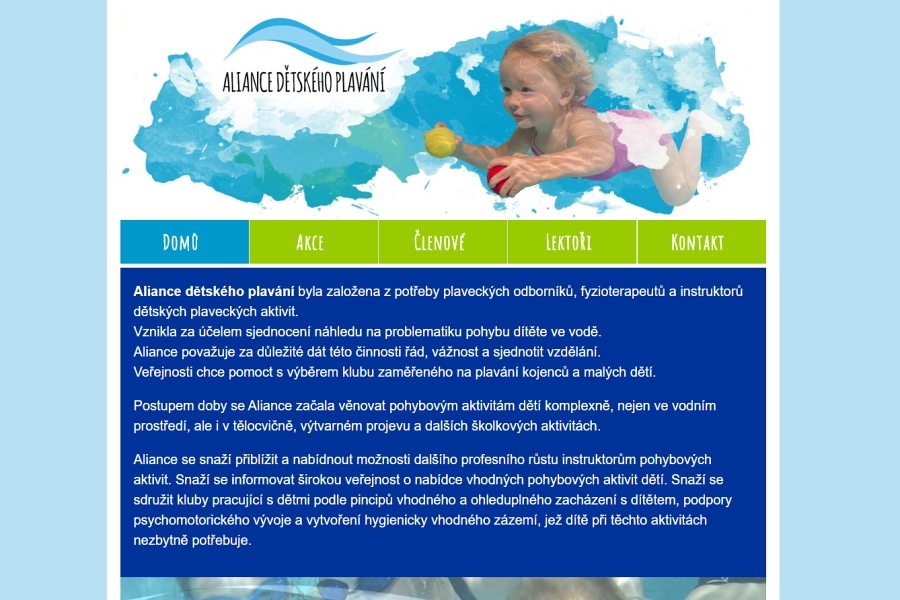 Webová prezentace aliance organizací věnujících se dětskému plavání.