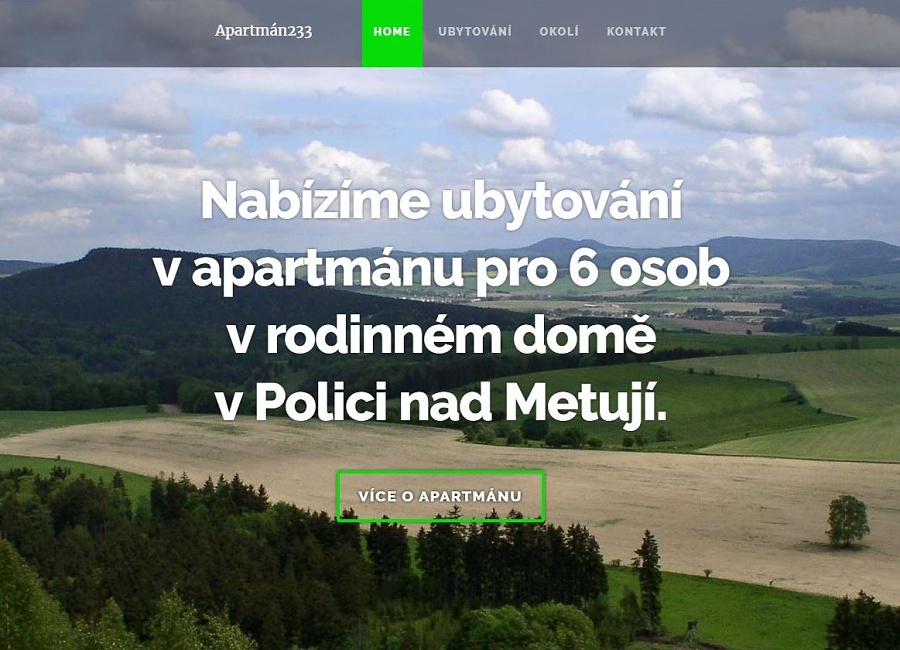 Tato webová stránka je založená na volně šiřitelné šabloně, kterou jsem si přizpůsobil potřebám prezentace ubytovacího zařízení. Web je plně responzivní, nad rámec šablony jsem doplil mapu využívající leaflet knihovnu. Součástí tvorby bylo i základní SEO.