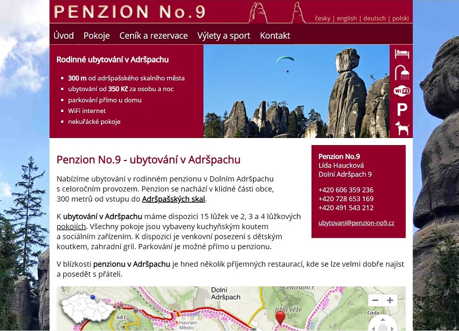 Webová prezentace nového penzionu na okraji Teplicko-adršpašských skal.